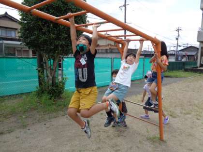 うんていに挑戦しました。手は痛くなるけど、できたら楽しいです。またみんなでやりましょう!