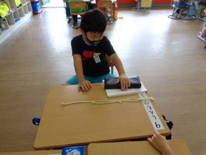 算数の長さの学習をしています。今日は、長さの比べ方を考えました。「端を揃える」「まっすぐに伸ばす」等、大切なポイントが分かってきました。