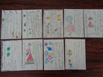 お世話になった保育園や保育園の先生に向けて、暑中見舞いを書きました。「ぼくは、べんきょうをがんばっています」「しょうがっこうは、せかいいちたのしいです」「ころなにまけないでください」等、読んでいると心が温かくなるすてきハガキです。今日、ポストに投函する予定です。