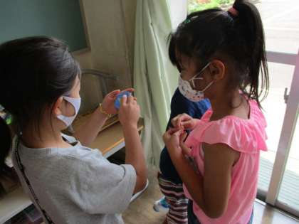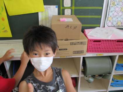 前から作っていた折り紙を景品にして教室中を探し回りました。