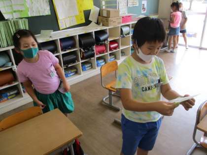 【2年生】お楽しみ会2 公開日 2020/08/06 更新日 2020/08/06 2年生 子供たちは教室中を探し回って折り紙の景品を集めました。友達と協力し合っている子もいました。 1学期最後の思い出づくりに、子供たちも楽しそうに参加してくれました。