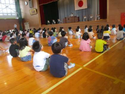【1年生】2学期がはじまりました。 公開日 2020/08/18 更新日 2020/08/18 1年生 2学期の始業式がありました。子供たちは、暑い中にもかかわらず話す人の方を向いて目と心をつないでしっかりとお話を聴いていました。校長先生のお話でもあったように1年生は、「みんなでぐんぐん」を合い言葉に2学期もがんばっていきましょう。