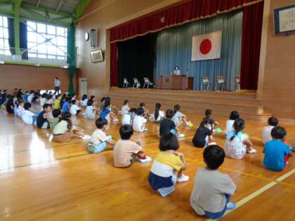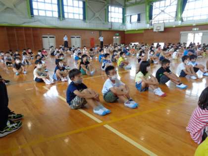 【1年生】よくがんばりました! 公開日 2020/08/18 更新日 2020/08/18 1年生 猛暑の中始まった2学期。コロナ予防にも熱中症にも引き続き要注意です。そんな厳しい状況の中、すばらしい態度で式に参加する1年生です。校長先生にも「お行儀がすばらしい!」と褒めていただきました。