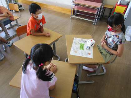 2学期が始まり、夏休みにしていたことや食べていたもの等について友達と楽しく話しました。また、それを絵や文章で表しました。