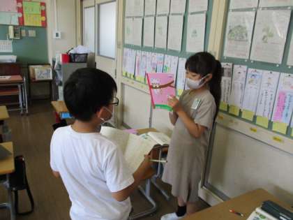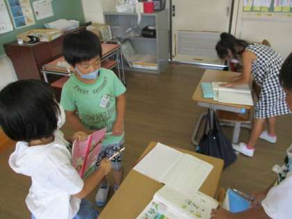 授業の最後には、作った文章を黒板に書いてもらいました。たくさんの子供たちが黒板で文章を書いてくれました。