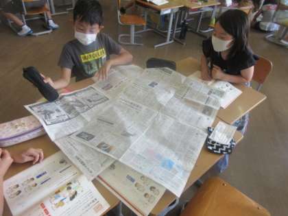 総合の学習に関連して、国語の学習で新聞について学習しました。