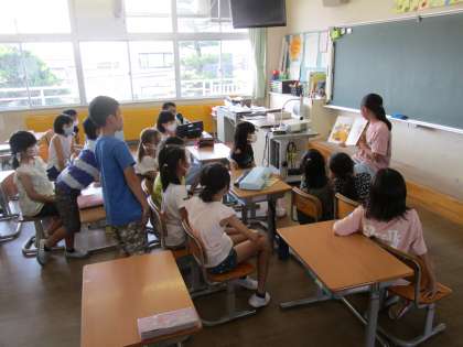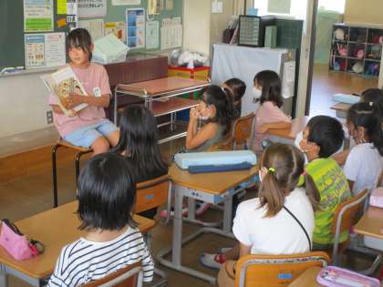 読み聞かせ隊の友達が「おおやまさん」を読み聞かせしてくれました。みなさんの周りにも「おおやまさん」のように見た目とは違う素敵なところがある人がいるかもしれませんよ。聞きやすい声の大きさやスピードで、話の内容に集中できました。素敵な読み聞かせをありがとう。