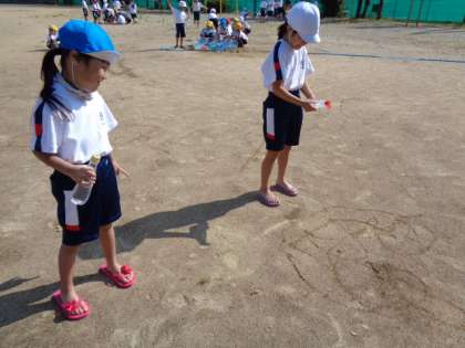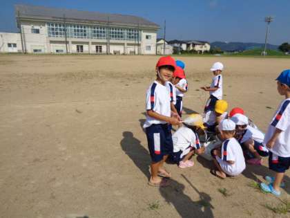 今日は楽しみにしていた水遊びの日でした。シャボン玉遊び、、水でグラウンドにお絵かき、水飛ばし競争、的当てなど、いろいろな遊び方で遊びました。