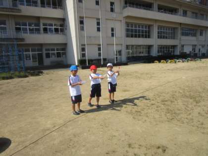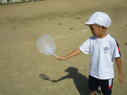 活動の様子です。骨組みだけのうちわでは、たくさんのシャボン玉を作ることができました。
