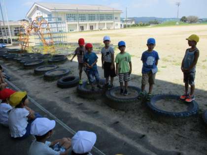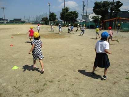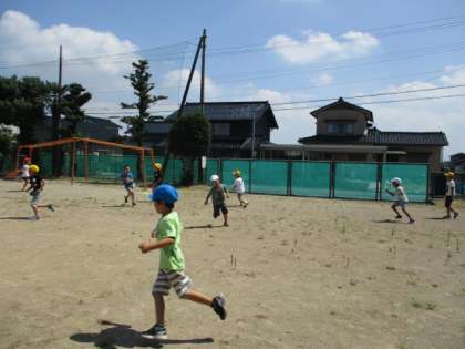 外ではおにごっこをして遊びました。「こおりおに」と「すいかおに」です。適度に休憩をとりながらでしたが、子供たちは元気いっぱい走り回っていました。