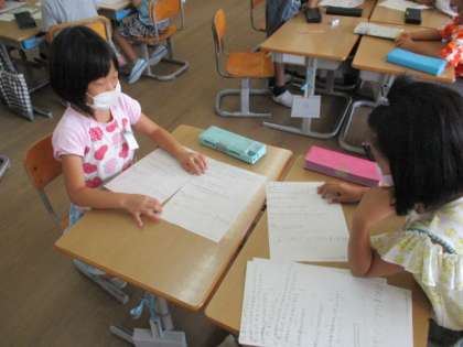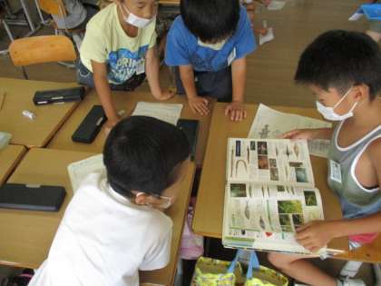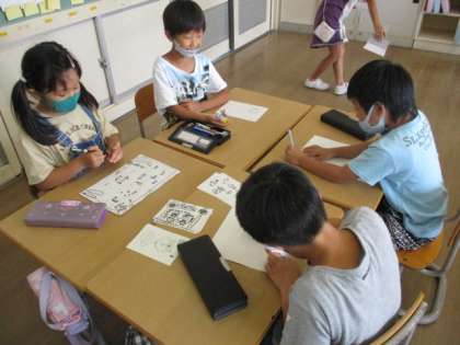 先生のアンケートをとって神保の先生のクイズを作ろうとする係、魚の図鑑を作ろうしている係、塗り絵をつくって、クラスのみんなにやってもらおうとする係など、活動の様子は様々です。