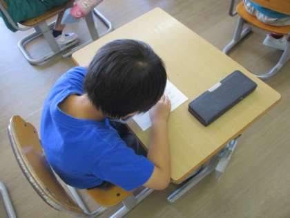 【2年生】鉛筆の持ち方に気を付けて 公開日 2020/08/25 更新日 2020/08/25 2年生 鉛筆の持ち方に気を付けて書き方の学習をしました。今回は「そり」がポイントの学習です。 丁寧に書くことを心がけ、子供たちは集中して取り組みました。