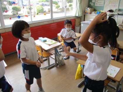 音楽では、ドレミの歌を歌ったり、ゲームをして遊びました。ゲームでは、「進化じゃんけん」「とんとんぱ」という遊びをしました。子供たちは元気に歌ったり活動しています。