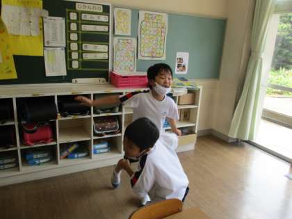 【2年生】音楽の時間2 公開日 2020/08/26 更新日 2020/08/26 2年生 進化じゃんけんとは、じゃんけんで勝ち続けて最後人間に進化したらクリアというじゃんけんの遊びです。 クリアした子供たちはどんどん自分の席に座っていくので、じゃんけんをする相手が少なくなっていくスリルを漢字ながら遊んでいます。 今日は たまご→うさぎ→さる→くま→人間 の順番に進化しました。