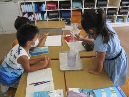学習の最後には、10デシリットル集まったら、1リットルと言い換える言い方や書き方を学習しました。