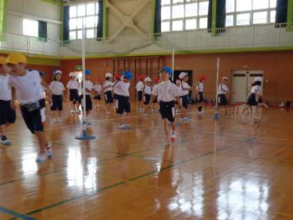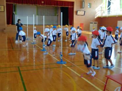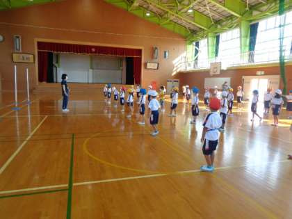 今日も熱中症に気を付けながら、短時間で集中して体育をしました。しっかり話を聞いてよくがんばっています。