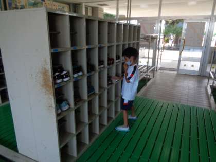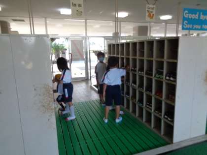 校長先生が、毎朝全校の子供たちの下足を揃えておられることに気付いた1年生。誰も何も言ってないのに、校長先生と一緒にみんなの靴を揃える子供たちが出てきました。最近では校長先生の前に、自分たちで全校の靴を揃えています。よいと思うこと、みんなのためになることを喜んで行う、すばらしい1年生です。