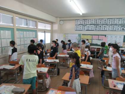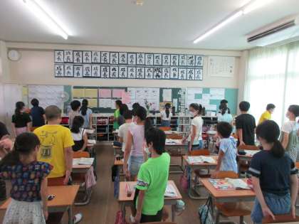 Unit5の学習を始めました。今日はターンライトゲームをして、表現に慣れ親しみました。担任の言葉に合わせて右を向いたり左を向いたり、上手にできていました。