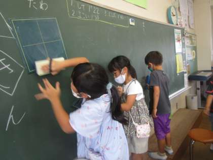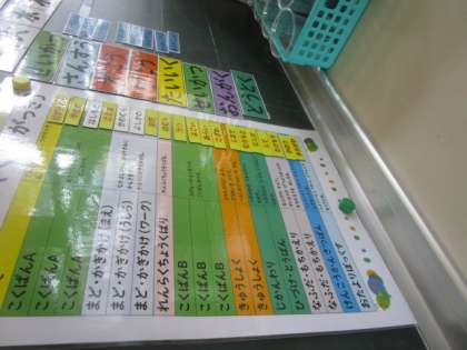 2学期に入り、当番活動が1学期と変わりました。それぞれが自分たちの仕事に責任をもち、クラスのお友達のためがんばって活動をしています。毎日その日の活動を振り返って当番活動ができた人は、マグネットを黄色にひっくり返しています。たくさんの人が当番活動に取り組めていますね。