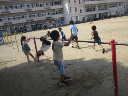 【1年生】休み時間の様子。 公開日 2020/08/31 更新日 2020/08/31 1年生 なかよしタイムの外の様子です。外で遊ぶ遊びとしては、最近は鬼ごっこやかくれんぼが多いです。今日も何人かでこおり鬼をしました。暑い中でも楽しそうに遊ぶ姿が見られました。