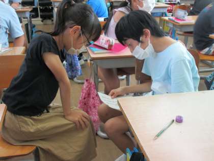 9月になり、新たな「日本語名人に挑戦」が始まりました。朝、子供の机の上に紙を置いておきました。登校後すぐに覚えようとした子供が多かったです。また、国語の授業でも暗唱に挑戦しましたが、グループでテストし合ったり、聞きあったりと、やる気いっぱいの子供たちでした。