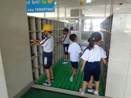 今週の朝も、全校みんなの靴並べに取り組む1年生。校長先生がいらっしゃる頃には、今朝は靴だけでなく、玄関のじょうろや来客用のスリッパまで揃えてくれていたそうです。楽しく進んでよいことを取り組む姿に頼もしさを感じます。5年生が階段清掃をしているところも見かけました。朝から嬉しく爽やかな気持ちいっぱいになりました。
