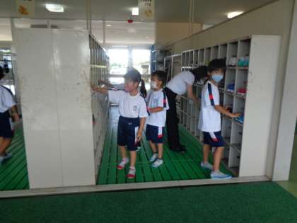 今週の朝も、全校みんなの靴並べに取り組む1年生。校長先生がいらっしゃる頃には、今朝は靴だけでなく、玄関のじょうろや来客用のスリッパまで揃えてくれていたそうです。楽しく進んでよいことを取り組む姿に頼もしさを感じます。5年生が階段清掃をしているところも見かけました。朝から嬉しく爽やかな気持ちいっぱいになりました。