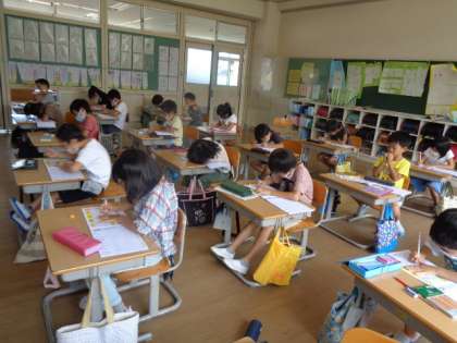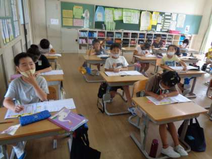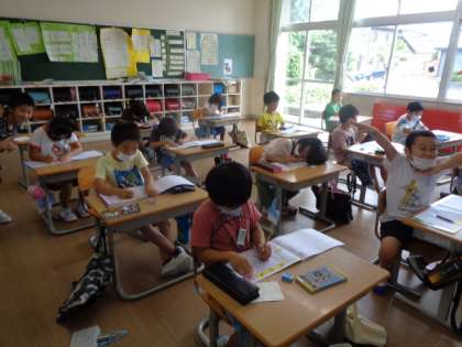 新しい漢字を3つ学習しました。書き順に気を付けて、丁寧に書いていました。早く終わったので、読み聞かせも2冊しました。しっかり聞いてくれて嬉しかったです。
