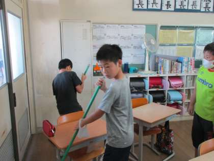 【5年生】自分で考えて動く 公開日 2020/09/02 更新日 2020/09/02 5年生 朝の「自分で考えて動く時間」。教室内、児童玄関等、一人一人が考えて清掃しています。玄関のめざら下にまで意識を広げ、きれいにしようという心がすばらしいですね。