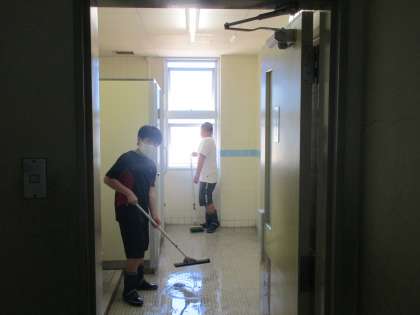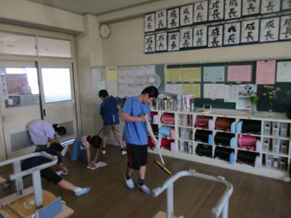 今日から清掃が再開しました。与えられた役割をきちんと果たす子供が多いです。重い机もすぐ協力して運ぶ姿もすてきでした。「きれいになった」「汚れがとれた」と嬉しそうな表情を見ると、こちらも嬉しくなりました。