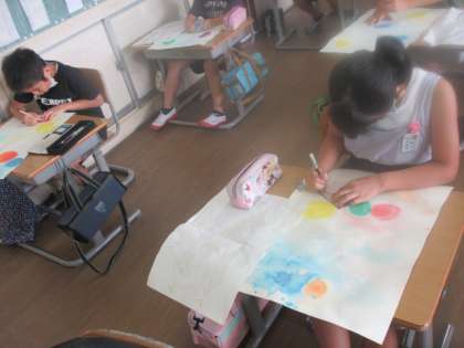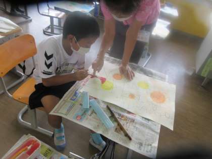 はみださないよう丁寧に色を塗ったり、自分の思いが伝わる色を作ったりするなど、工夫する姿が見られました。