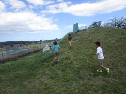 なかよしタイムの時間に網と虫かごをもって築山や神保っこワールドに行きました。子供たちは一生懸命虫を追いかけて捕まえていました。明日の生活科でも、虫探しに行く予定です。どんな虫と出会えるのか楽しみですね。