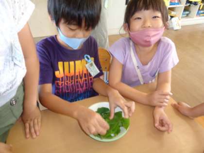 【1年生】いもむしのいも子ちゃん 公開日 2020/09/08 更新日 2020/09/08 1年生 あさがおに、でっかいいもむしが付いていました。初めは「気持ち悪〜い」と言っていた子供たちでしたが、葉っぱを食べたり寝たりする姿をみるうちに可愛くみえてきたようです。せっせと葉っぱをあげて可愛がっていました。