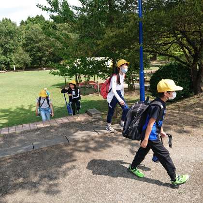 午前は池で楽しく、生き生きと活動することができました。お弁当を食べて、午後の活動オリエンテーリングを始めました。