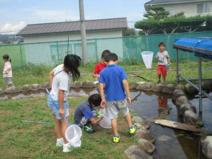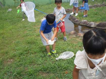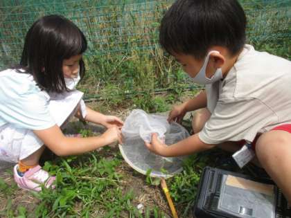 活動の様子です。神保っこワールドではカエルやオタマジャクシがいました。トンボなどの動きが速い生き物は捕まえるのが難しかったですね。