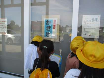 【2年生】町探検7 公開日 2020/09/11 更新日 2020/09/11 2年生 かき氷のちらしを見て「いいなぁ、食べたい」「わたしは食べたことあるよ!」と子供たちは大盛り上がり。 また、木でできた建物にも興味津々です。