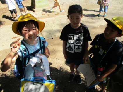 どんぐりや、きれいなこけが生えた石を見つけて教えてくれた子もいます。楽しい発見がたくさんありました。