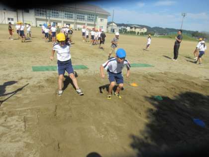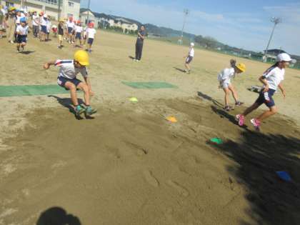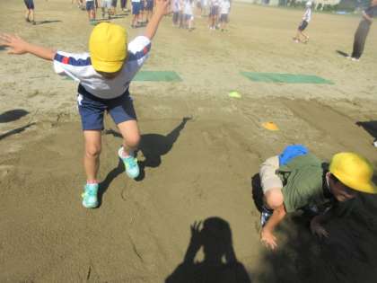 【4年生】ジャンプ、ジャンプ! 公開日 2020/09/11 更新日 2020/09/11 4年生 立ち幅跳びの様子です。 今日は、8歩や10歩で助走をつけました。 いつもより勢いよく走ることで、跳べる距離も伸びました。 来週はもっと遠くまで跳べるようになると思います。