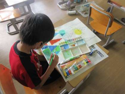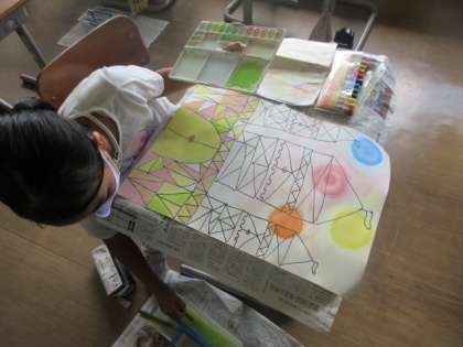 【4年生】どんなお城になるかな 公開日 2020/09/14 更新日 2020/09/14 4年生 図工の様子です。 色塗りでは、グラデーションのようにしたり、対称的になるようにしたりなど、想像を膨らませながら取り組みました。一人一人違って、みんなすてきです。