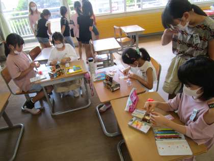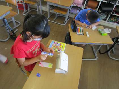 なかよしタイムに「しおりコンテスト」を行いました。1組・2組ともの子供たちが参加し、素敵なしおりを作ろうと飾りを付けたり、色を塗ったりしました。明日、よかった作品が紹介される予定です。