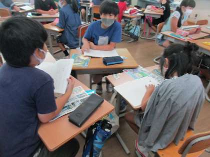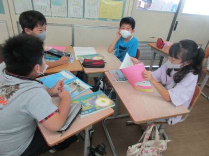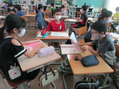 たずねびとの学習もまとめに入りました。初発の感想を書き、今日まで場面ごとに登場人物の心情やその変化について考えてきました。今日は、今までの学習を通して変化した自分の気持ちや考えを友達と伝え合いました。