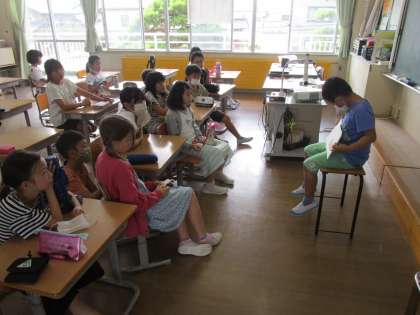 今日は、教育実習中の先生に「ぼくらちきゅうじんだいひょう!」を、読み聞かせ隊の友達に「ぼくたちまたなかよしさ!」を読み聞かせしてもらいました。「ぼくらちきゅううじんだいひょう!」では、絵を食い入るように見ながらおもしろく聞きました。また、「ぼくたちまたなかよしさ!」では、最後はほっこりする素敵なお話を楽しみました。