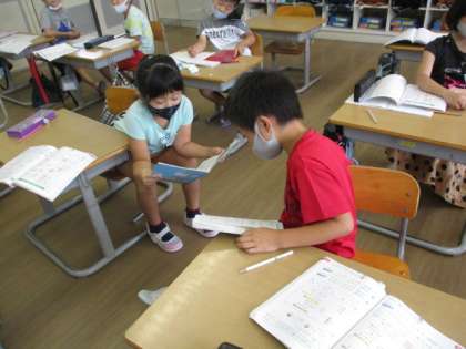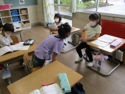 【2年生】計算の説明をしてみよう 公開日 2020/09/18 更新日 2020/09/18 2年生 今日は100の位に繰り上がるたしざんの筆算の学習をしました。どんな風に数を繰り上げるのかを自分の言葉で説明します。 友達同士で言葉の確認や言い合いをしています。