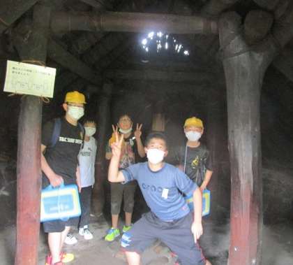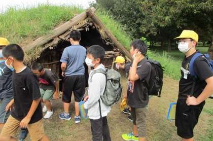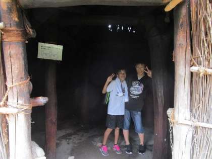 縦穴住居を体験 中は、思ったより広い。外は暑いけど、中は涼しいんだね。