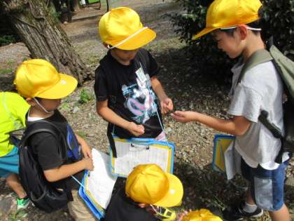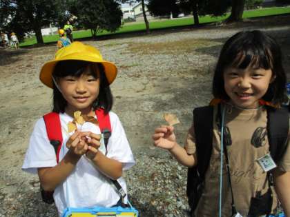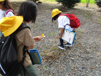 龍王社では、どんぐりやいちょうのはっぱを拾ったり、新しい発見を見つけたりしました。