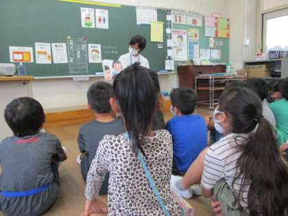 今日は図書ボランティアの方の読み聞かせの日でした。 偶然にも参観日のお話で、子供たちも聞き入っていました。