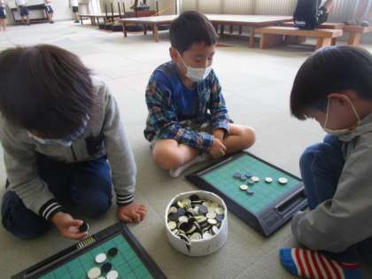 【1年生】なかよしタイム 公開日 2020/09/28 更新日 2020/09/28 1年生 なかよしタイムの時間にオセロを行いました。初めてオセロを行うお友達もいて、やり方をお友達に教えてもらいながらやっていました。お友達との関わりを通して、今までやってこなかったことにも取り組む姿がたくさん見られています。