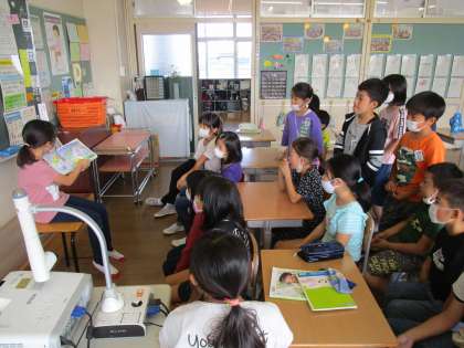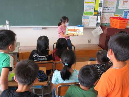 【3年生】読み聞かせ隊の読み聞かせ 公開日 2020/09/28 更新日 2020/09/28 3年生 読み聞かせ隊の友達が「ノラネコぐんだんパンこうじょう」を読んでくれました。ノラネコたちのかわいらしい行動がおもしろかったですね。