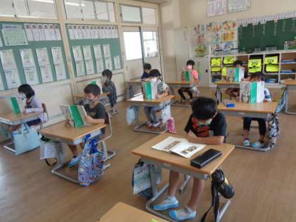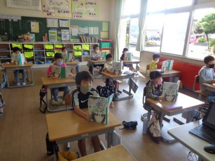 「うみのかくれんぼ」の音読をしています。一音一音ハキハキと言葉を言う練習をしています。