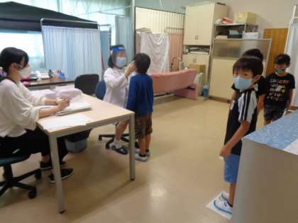 一人一人、目を診ていただきました。コロナ対策のため、お医者様はしっかりフェイスガードをしておられました。